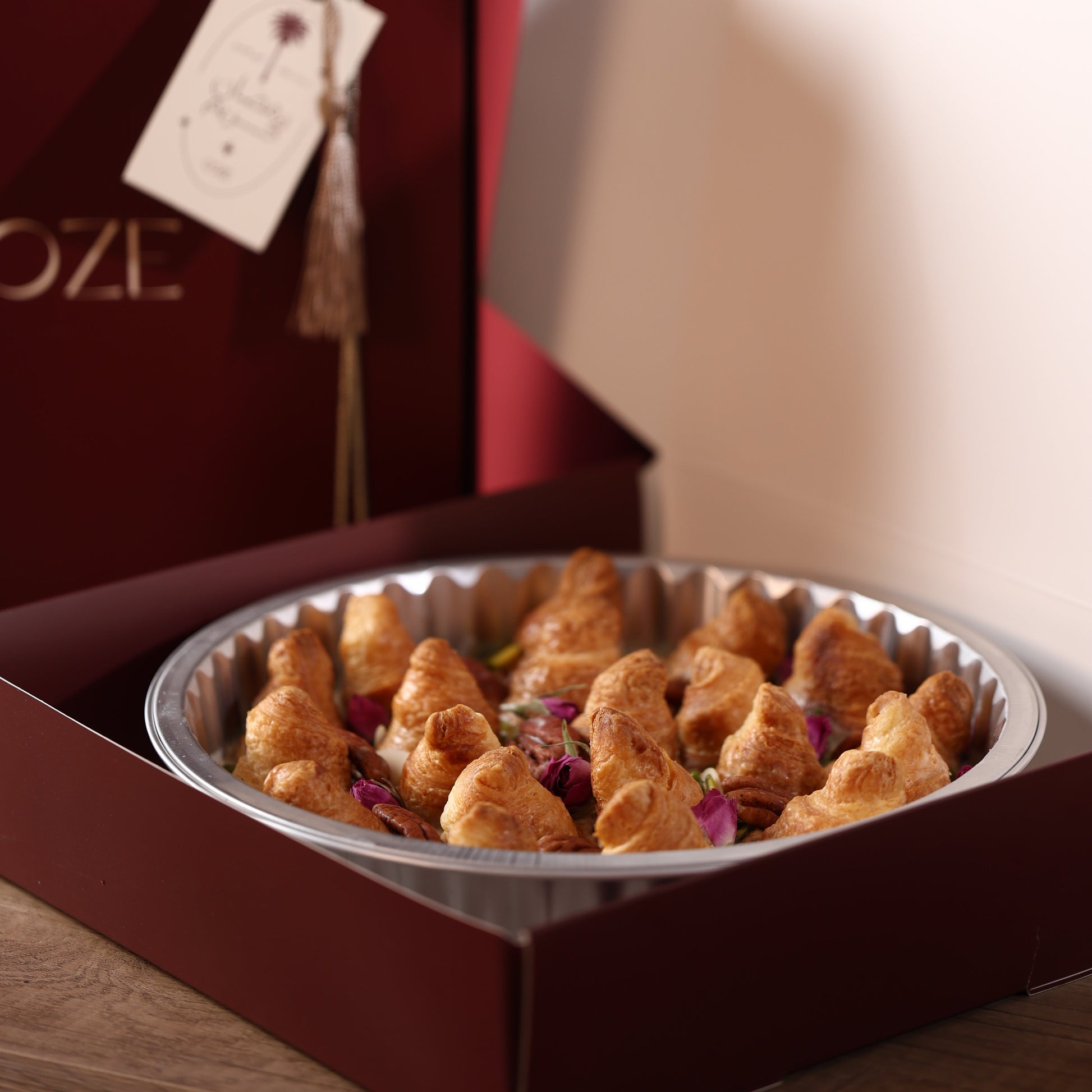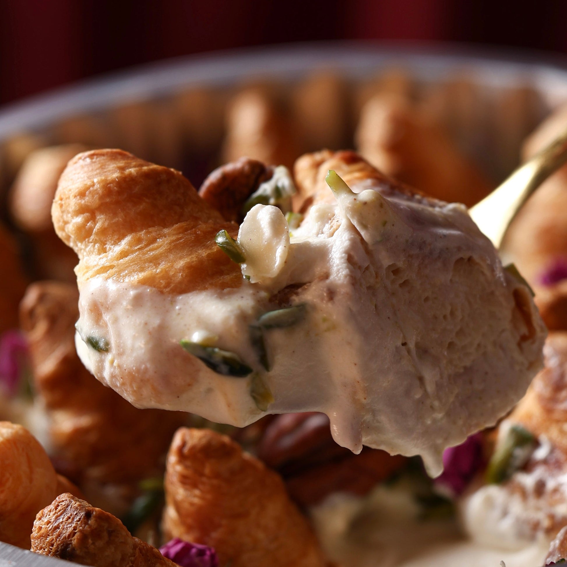 Mini homemade croissants, baked fresh daily — crispy on the outside and soft on the inside, soaked in our special Om Ali mix and rich creamy sauce.